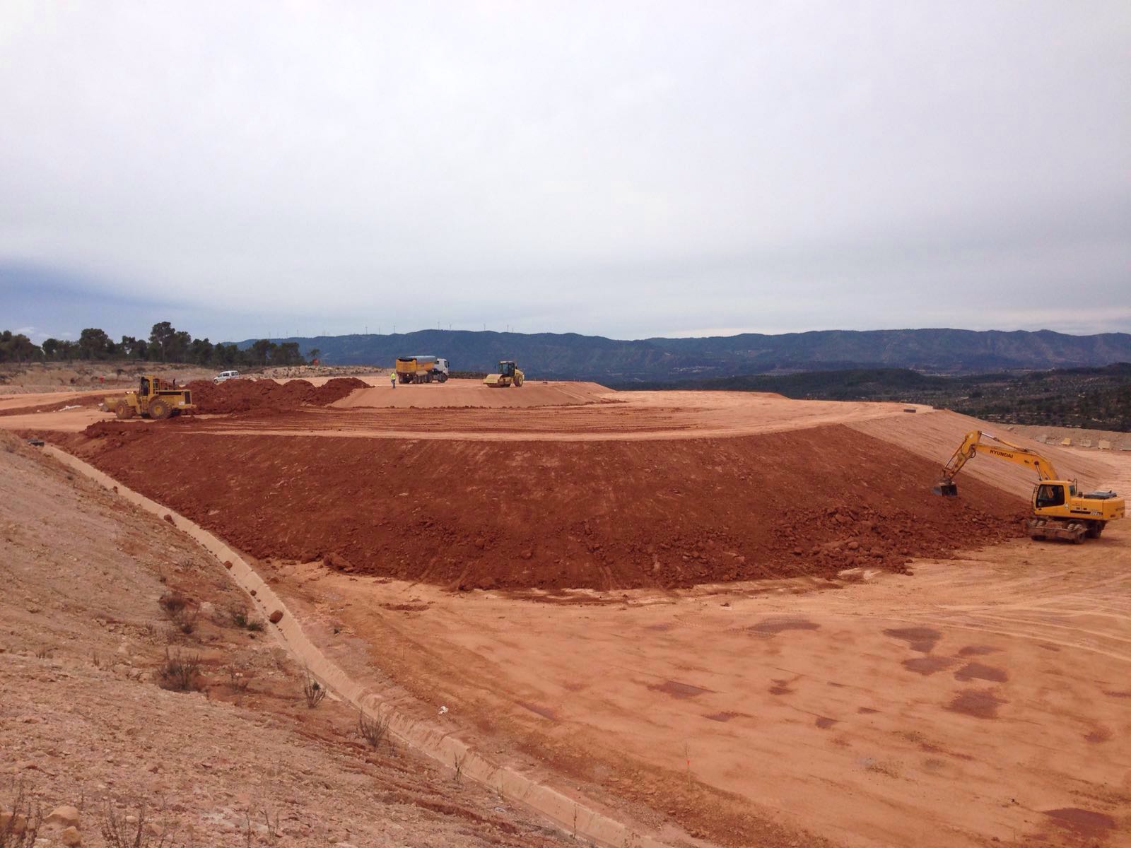 Inicialmente ejecutamos entre los años 2013 a 2015 el movimiento de tierra para la preparación del vertedero donde irían posteriormente los residuos extraidos del embalse de Flix.