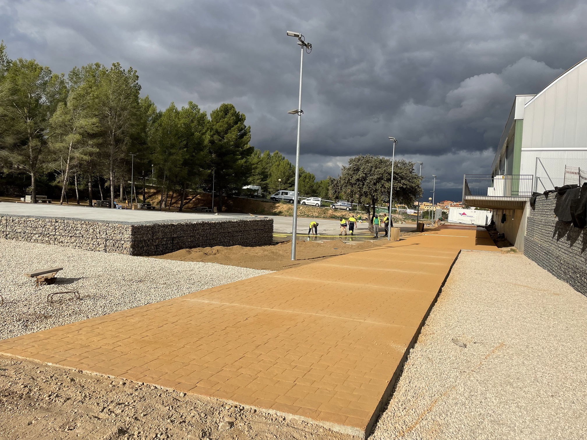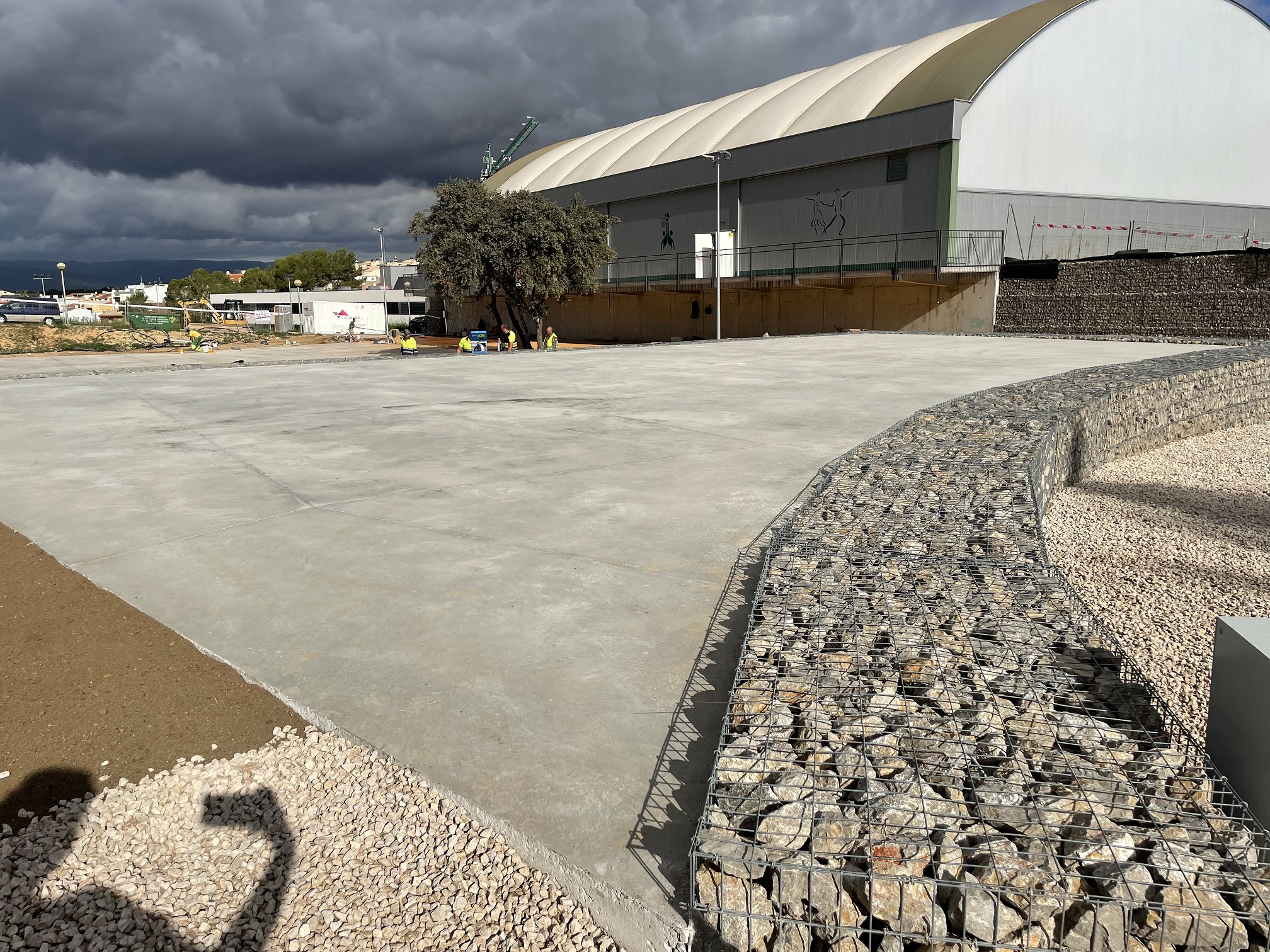 Obra de urbanización del entorno del Centro Cívic para dotarlo de un acceso seguro y accesible. Se realiza la demolición de un bloque de hormigón para permitir la remodelación del entorno según el proyecto. Se construyen muros de contención, gradas con rebaje y terraplenados para alcanzar las cotas necesarias para la urbanización. Se dota al espacio de todas las conexiones a pluviales, de riego e iluminación necesarias.