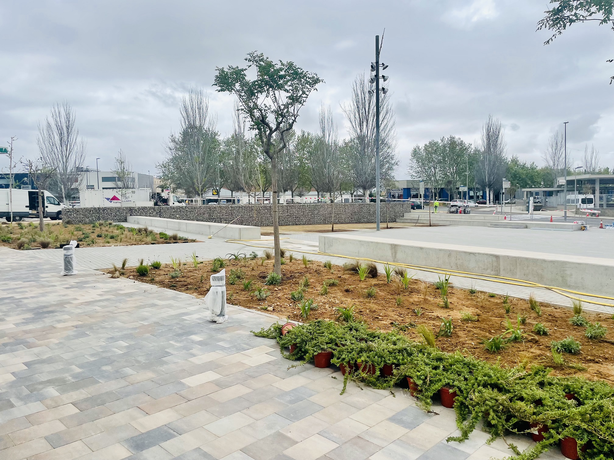 Obra de urbanización del entorno del Centro Cívic para dotarlo de un acceso seguro y accesible. Se realiza la demolición de un bloque de hormigón para permitir la remodelación del entorno según el proyecto. Se construyen muros de contención, gradas con rebaje y terraplenados para alcanzar las cotas necesarias para la urbanización. Se dota al espacio de todas las conexiones a pluviales, de riego e iluminación necesarias.